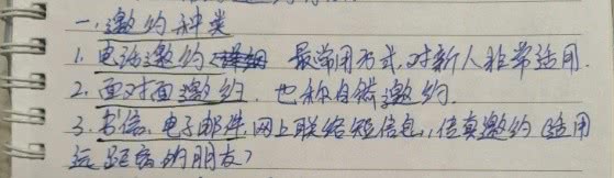 传销内部学习资料里,邀约的种类有三种,第一,电话邀约。第二,面对面邀约,第三,书信,电子邮件,传真,等网络邀约。